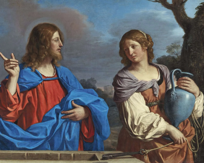 A woman from Samaria came to draw water. Jesus said to her, ‘Give me a drink.’ (For his disciples had gone away into the city to buy food.) The Samaritan woman said to him, ‘How is it that you, a Jew, ask for a drink from me, a woman of Samaria?’ (For Jews have no dealings with Samaritans.) Jesus answered her, ‘If you knew the gift of God, and who it is that is saying to you, “Give me a drink”, you would have asked him, and he would have given you living water.’ The woman said to him, ‘Sir, you have nothing to draw water with, and the well is deep. Where do you get that living water? Are you greater than our father Jacob? He gave us the well and drank from it himself, as did his sons and his livestock.’ Jesus said to her, ‘Everyone who drinks of this water will be thirsty again, but whoever drinks of the water that I will give him will never be thirsty again. The water that I will give him will become in him a spring of water welling up to eternal life.’ The woman said to him, ‘Sir, give me this water, so that I will not be thirsty or have to come here to draw water.’